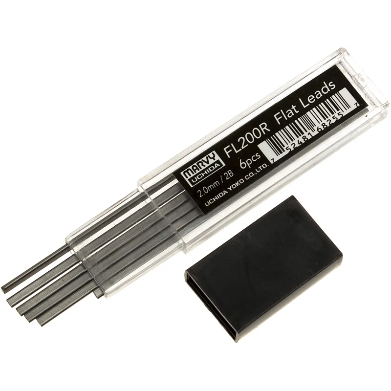 Japonų gamintojo „Marvy Uchida“ grafito šerdelės, skirtos automatiniam mechaniniam pieštukui. Rinkinį sudaro 6 vnt. plokščių šerdelių, kurių storis 2 mm, kietumas 2B. Gamintojas garsėja aukštos kokybės rašymo ir piešimo priemonėmis.