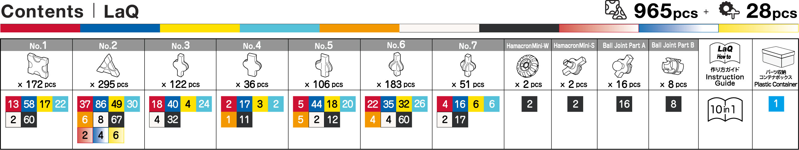 - 965 detalės (tarp jų skaidrios LaQ detalės);