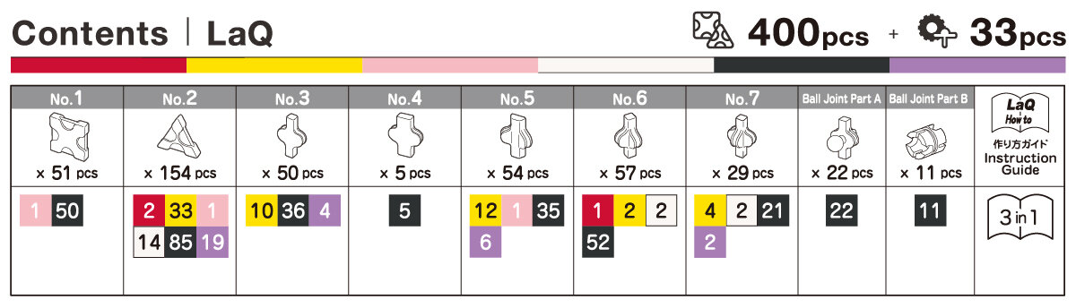 Visi LaQ rinkiniai sukurti ir pagaminti Japonijoje, todėl pasižymi išskirtine kokybe ir ilgaamžiškumu. Šio LaQ rinkinio, kaip ir kitų,  detalės tinkamos derinti ir jungti su visų kitų LaQ rinkinių detalėmis.