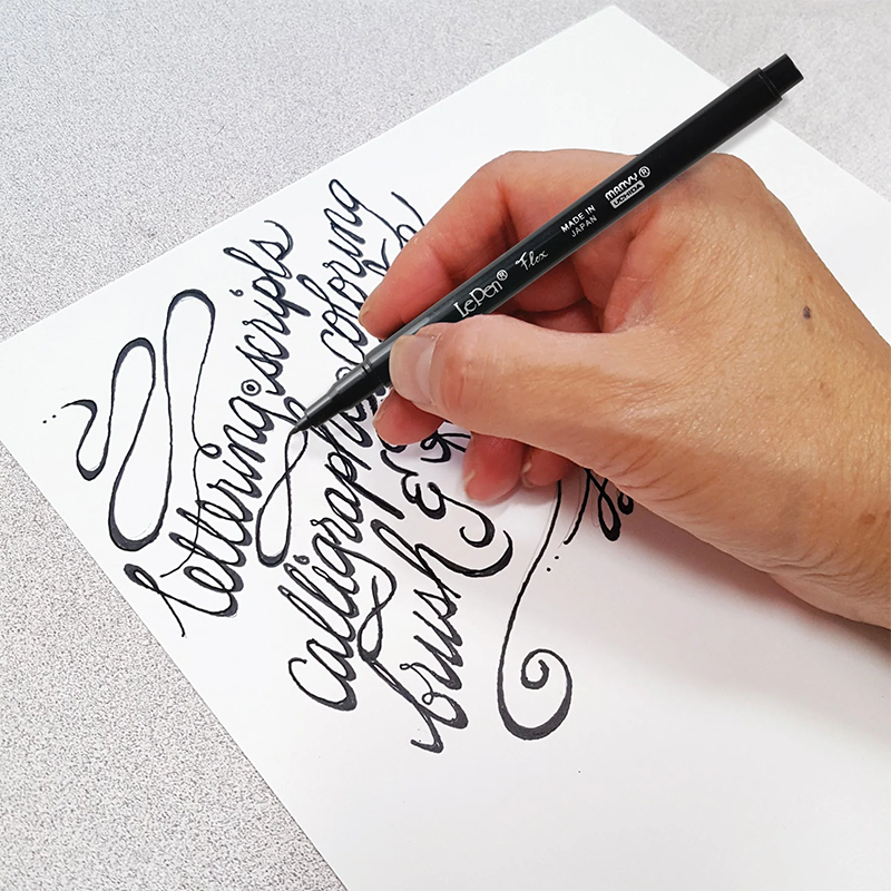 Japonų gamintojo „Marvy Uchida“ rašikliai LE PEN FLEX pasižymi glotniu, lanksčiu teptukiniu galiuku, juos lengva ir patogu naudoti. Švelniai kontroliuodami spaudimą, šiais rašikliais lengvai išgausite plastiškas įvairiausio storio linijas. Puikiai tinka meniniam šriftui, kaligrafijai (ypač atvirukų, kvietimų, sveikinimų rašymui), taip pat kūrybiškam užrašų knygučių, planuoklių bei dienoraščių dekoravimui!