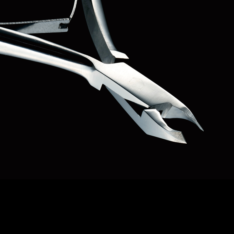 Tai profesionalios nerūdijančio plieno odelių kirpimo žnyplutės su maža 1/4 dydžio kirpimo galvute (apie 3 mm). Ji leidžia tiksliai pasiekti nago kraštą ir švariai pašalinti odeles ar smulkias ataugėles.