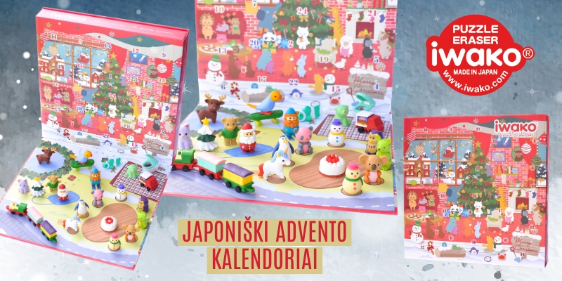 Nemėgstantiems užsiimti rankdarbiais ir ieškantiems jau paruošto naudojimui Advento kalendoriaus – rekomenduojame japonišką IWAKO advento kalendorių su 24 figūrėlėmis-trintukais, su kuriomis galima žaisti, kolekcionuoti, arba naudoti kaip trintuką.